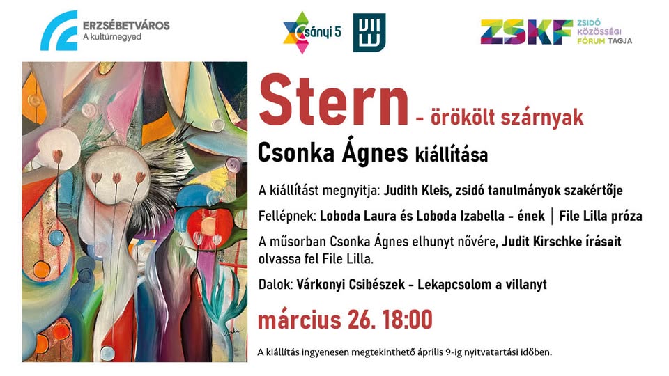 Családi emlékezet, zsidó gyökerek, női sorsok. Az Örökölt szárnyak egy személyes visszatérés: nagyszülők, édesanya és egy elhunyt nővér emlékének állít emléket. A festmények alaprétegét a nővér írásai adják, amelyek a debreceni zsidó családi lét hétköznapjait idézik meg a 60–70-es évek Magyarországán.