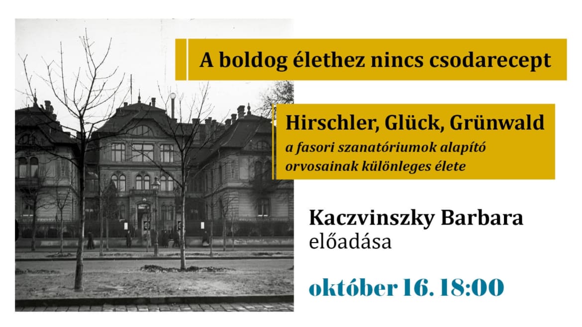 A boldog élethez nincs csodarecept címmel Hirschler, Glück, és Grünwald - a fasori szanatóriumok alapító orvosainak különleges életéről tudunk meg érdekes információkat, történeteket.